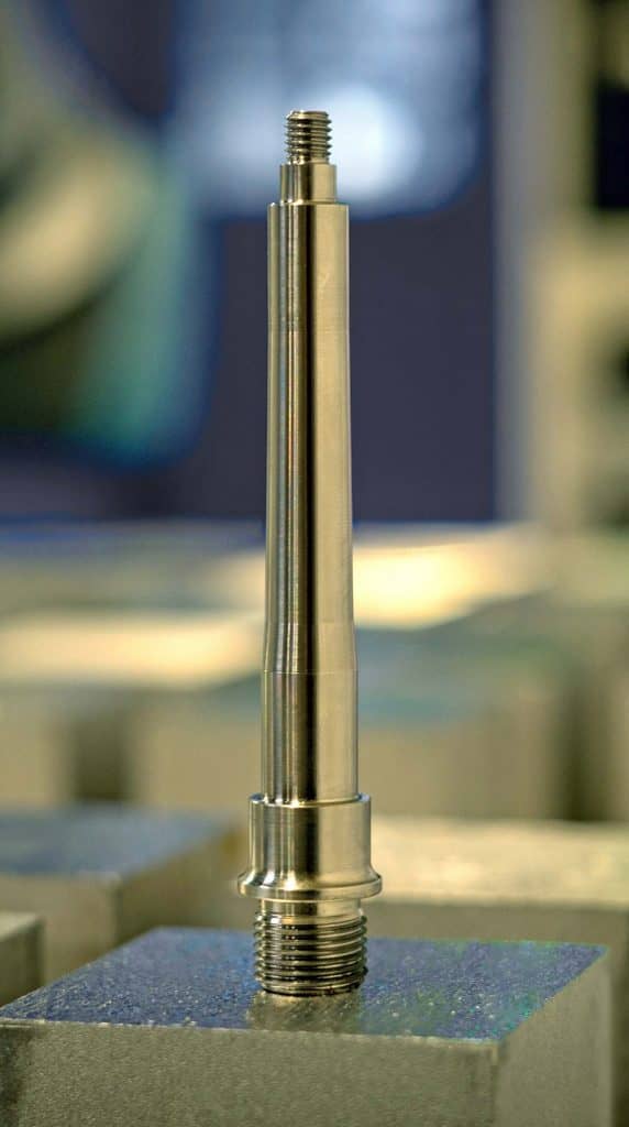 Tolerance is easily held on the 620YS. It is generally 0.05 mm, but can be as tight as H7 (0.02 mm) on the bearing diameters of the now in-house-produced pedal axles, which are machined from 17/4 stainless steel of the top hardness grade (11050).