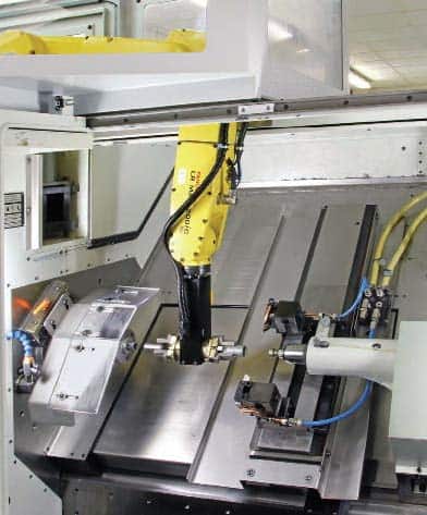 Mr Camburn commented, “We are also looking closely at incorporating component washing and utilising the robot to perform in-process gauging, with direct feedback of tool offsets to the lathe control. Currently this is done manually. Another possibility is to add laser marking to the robot’s duties.