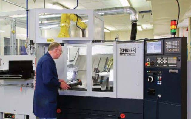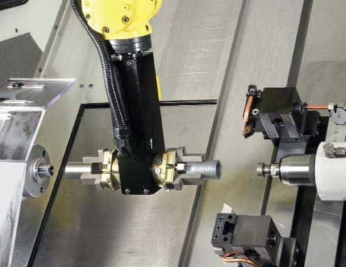 It was still much cheaper than having to buy two grinders, however. At one point, consideration was given to purchasing two lathes, one for sleeves and another for spools, and feeding both with a single robot. This was unnecessary, however, as the efficiency of the Spinner cell allows the required output of both components to be produced in a single shift.