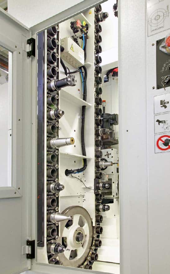 Another area of economy has been to remove retrospective field expandability from two to six pallets, as well as the ability to increase the size of the tool magazine up to 220 pockets. Two 400 or 500 mm pallets are the maximum on the 450j and the choice of tool magazine is either 40 or 60 stations.