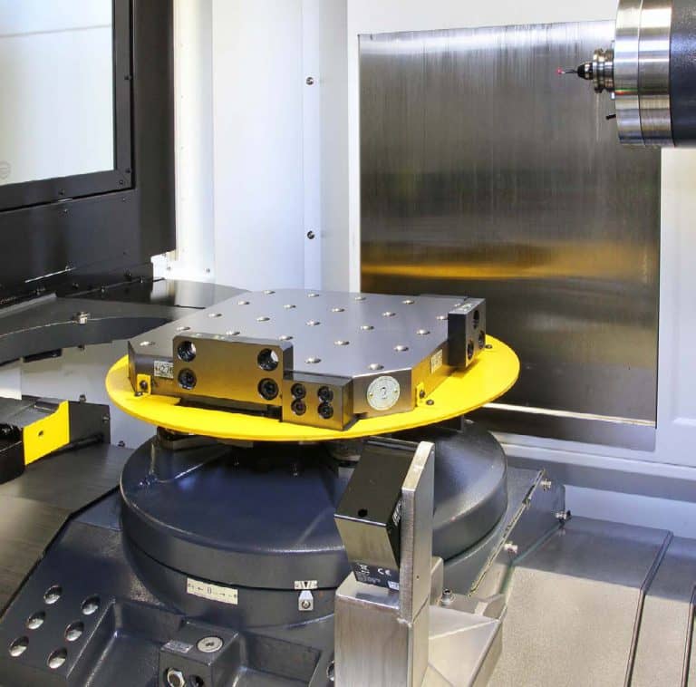The one-piece bed casting, THK heavy duty roller guideways and BIG Plus 22 kW, 40-taper, direct drive spindle with 30 bar through-tool coolant remain the same. However, the standard full 4th axis rotary table has been replaced by a table with one degree indexing at 16.6 rpm, although the full (0.001 degree) 4th axis is available as an option.