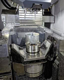It was felt that a 30-taper tool interface would suffice for machining all materials to be used in these orthopaedic devices and such machines have the additional advantage of a small footprint. His preference was for a true 5-axis machine rather than a 3-axis model with a compound CNC table, as the former would ensure the necessary functionality within a compact envelope.