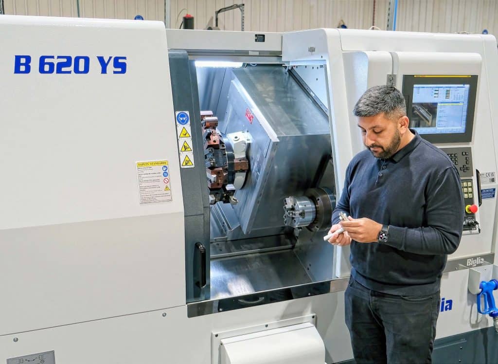 Mr Chohan visited the Biglia factory in Italy with a Whitehouse sales engineer to see the lathes being built and get a sense of the quality of manufacture. Needing a strong, powerful machine capable of broaching stainless steel, he was impressed by the specification of the B 620 YS, in particular the 30 kW direct-drive, liquid-cooled main spindle motor offering 700 Nm of torque.