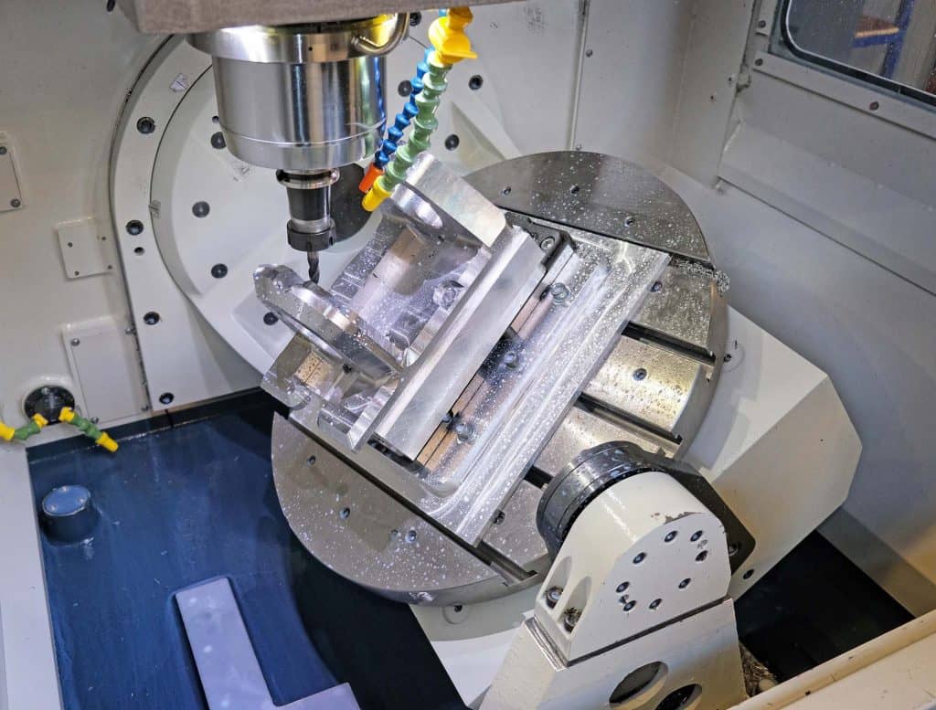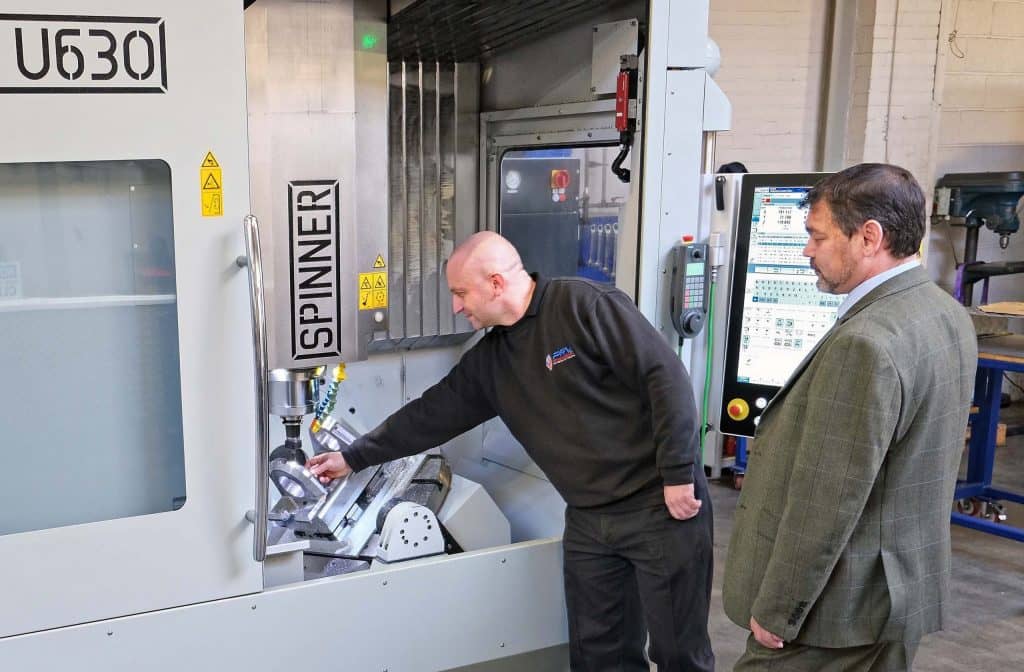 So PRV Engineering’s managing director Simon Jones and works director Alun Cox set about researching the market for a 5-axis, trunnion-type VMC that was appropriately sized for this defence industry contract. The Spinner option was chosen partly due to its generous 630 x 530 x 465 mm working envelope in a footprint of just 2.75 x 2.53 metres. Other machines they looked at were much less compact.
