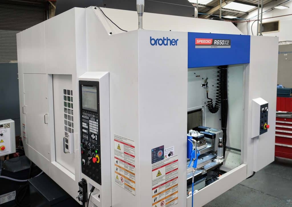 It was the high speed of the Brother machining centre that was central to Mr Smith’s decision to make the investment. He says the machine is “remarkably” faster than a 40-taper model, thanks to its dynamics. This is due to 2.2g linear axis acceleration, 0.2 second spindle acceleration to 16,000 rpm, simultaneous tool changing (0.7 second) and repositioning of the spindle for the next cut, reduced machine downtime for tool replenishment thanks to the 40-station tool magazine (14 or 22 tools are optional), and the fact that the 2APC arrangement means that there is only a short delay before the first cut is taken on the next part.