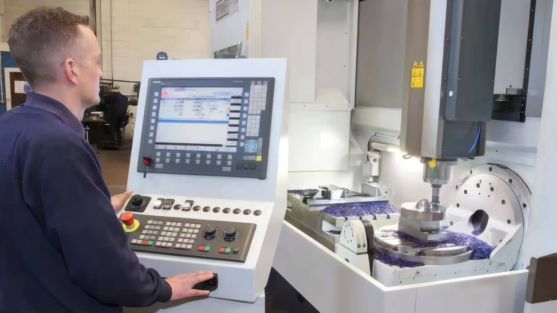 “By positioning it in the horizontal plane, a long component measuring up to 1,520 mm can be laid across the rotary table and the fixed table to the left of it. Three-axis CNC machining can then take place throughout the whole working area.”
