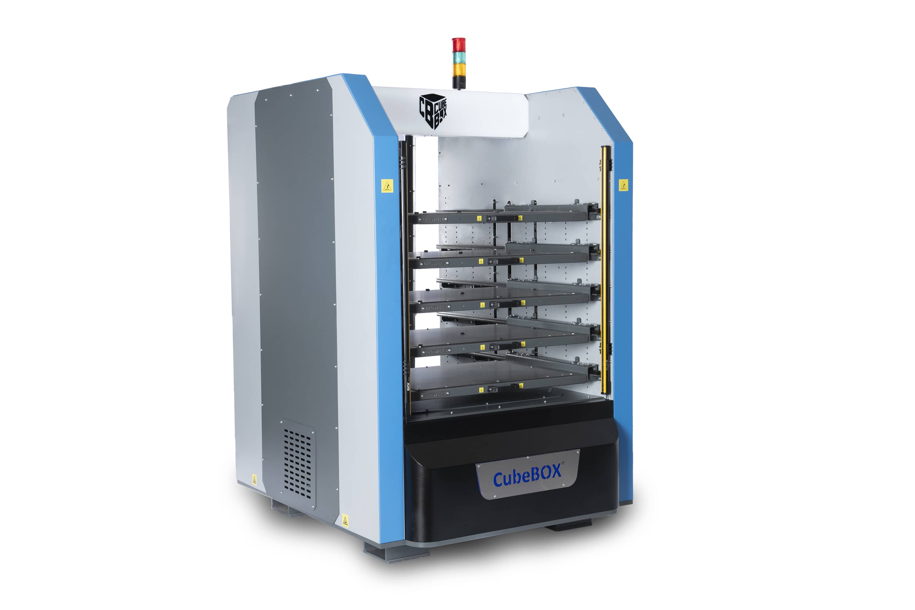 The CubeBOX Blues DR from Tezmaksan is a compact, drawer-based robotic automation cell that uses a 6-axis robot and RoboCAM software to load and unload CNC machines—supporting continuous 24/7 operation, handling workpieces from 5 mm to 550 mm, and managing 5–8 drawers for high-efficiency parts storage.